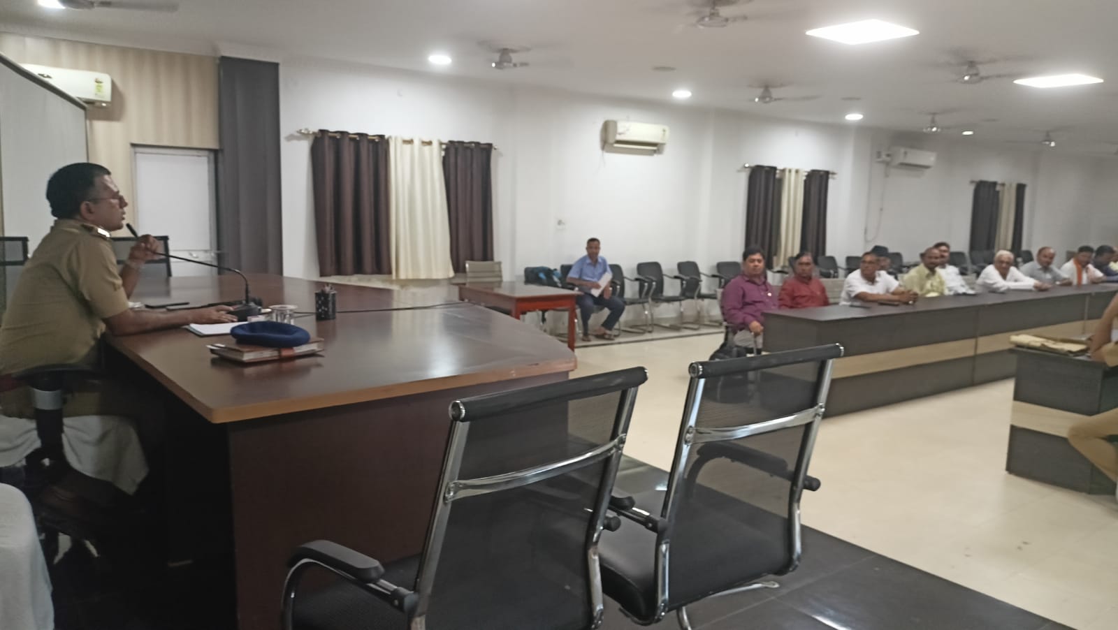 आज दिनांकः21.07.2023 को पुलिस अधीक्षक मीरजापुर ‘संतोष कुमार मिश्रा’ के निर्देशन में अपर पुलिस अधीक्षक नगर द्वारा पुलिस लाइन स्थित सभागार कक्ष में आगामी त्यौहारो के दृष्टिगत जनपद के बैंक प्रबधकों, बैंक मित्रों, सर्राफा व्यवसायियों, पेट्रोल पम्प मालिकों एवं व्यापार मण्डल के पदाधिकारीगण के साथ बैठक कर उनकी समस्याओं को सुना गया तथा सुरक्षा व सहयोग का भरोसा दिया गया । उनकी सुरक्षा के साथ ही उनके व्यापार में आनी वाली सुरक्षा संबंधी समस्याओं को प्रत्येक व्यापारी बन्धु से पूछ कर जानकारी की गयी तथा साथ ही समस्याओं को दूर करनें के लिए पुलिस के माध्यम सें हर संभव प्रयास करनें की बात कही गयी और उनसे ये भी कहा सुरक्षा के दृष्टिकोण से अपने अपने प्रतिष्ठानों/दुकानों में सीसीटीवी कैमरा अवश्य लगायें । किसी प्रकार के अपराधी या व्यक्ति द्वारा धमकी आदि दी जाती है तो तत्काल स्थानीय पुलिस को सूचित करें ।