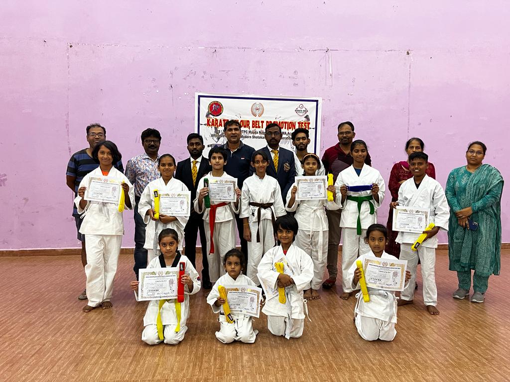 नागपुर महाराष्ट्र! एनटीपीसी मौदा स्थित मेवा क्लब में आज कराटे कलर बेल्ट प्रतियोगिता का आयोजन किया गया जिसमें लगभग 20 से अधिक बच्चों ने प्रतिभाग किया प्रतियोगिता में निर्णायक मंडल के रूप में राकेश कुमार गुप्ता, रोहित कुमार, मौजूद रहे इस प्रतियोगिता में प्रथम स्थान रूतवी ने प्राप्त किया और द्वितीय स्थान पर चैतन्या तृतीय स्थान पर अनामिका रहे