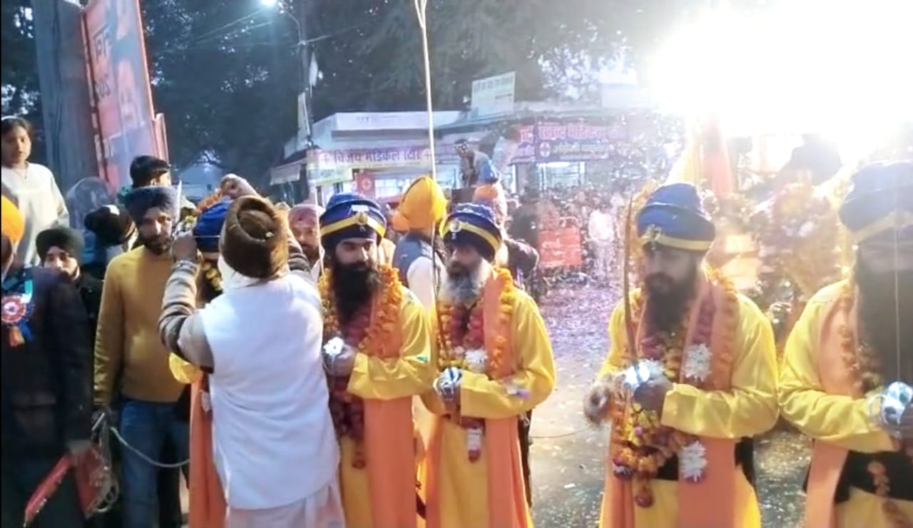 सहित विभिन्न संगठनों द्वारा स्वागत किया जाता है। अस्पताल चौराहे पर उ0प्र0 उद्योग व्यापार मण्डल चौहान गुट के प्रदेश अध्यक्ष जीसी सिंह चौहान के नेतृत्व में दर्जनों व्यापारियों ने स्वागत ने पंच प्यारों को मार्ल्यापण कर स्वागत किया एवं दरबार साहब पर मिष्ठान अर्पित कर आशीर्वाद लेकर प्रसाद प्राप्त किया।