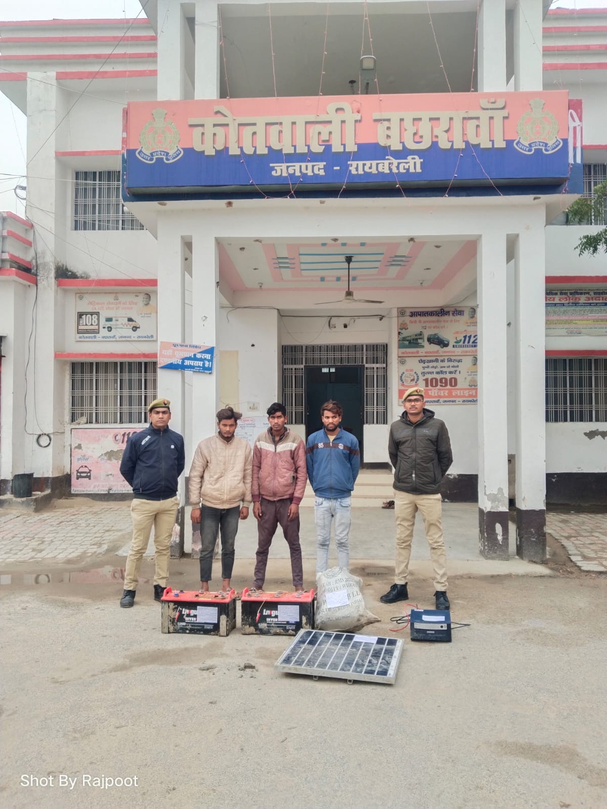 01 अदद इन्वर्टर लूमीनियस कम्पनी का02 अदद बडी बैटरा लिवगार्ड कम्पनी के01 अदद सोलर पैनल गिरफ्तार करने वाली पुलिस टीम-उप-निरीक्षक सुखपाल आरक्षी सोनू शर्मा आरक्षी अंकित राठौर आरक्षी सोमेश कुमार वर्मा थाना बछरावां रायबरेली ।