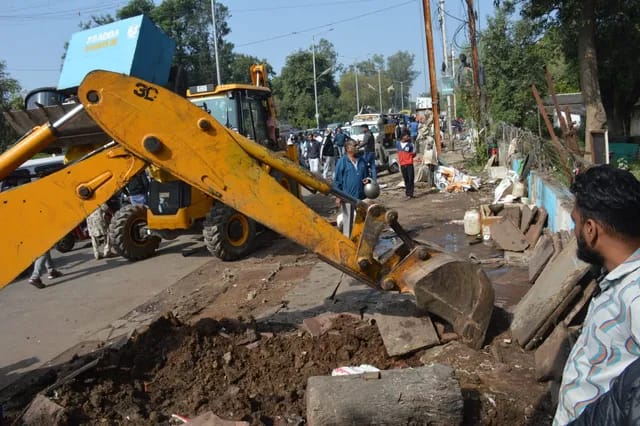 (गुरूवार को केंट क्षेत्र में भी खुले में मांस बेचने वाले ठिकानों पर आज बुल्डोजर चला। केंट बोर्ड और नगर निगम के संयुक्त अमले ने केंट पेंटीनाका से लेकर गोराबाजार क्षेत्र में सड़क पर अतिक्रमण कर बिना लाइसेंस के मांस विक्रय करने वाली दुकानों को हटाया)