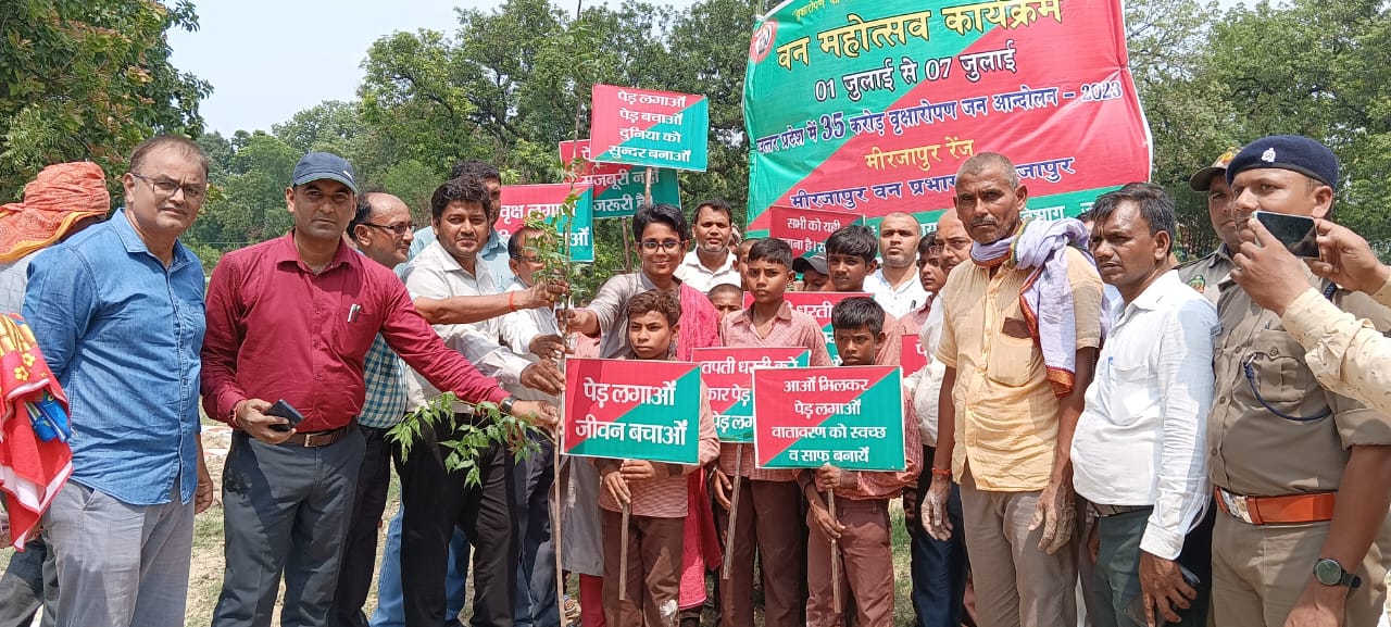 मीरजापुर 06 जुलाई 2023- मुख्य विकास अधिकारी श्रीलक्ष्मी वीएस ने वन महोत्सव कार्यक्रम के अन्तर्गत विकास खण्ड छानबे के ग्राम सुमतिया में नगर मजिस्ट्रेट विनय कुमार सिंह, वनाधिकारी, खण्ड विकास अधिकारी, खण्ड शिक्षा अधिकरी एवं अन्य अधिकारियों सहित स्कूल के छात्रो द्वारा वृक्षारोपण किया गया। मुख्य विकास अधिकारी ने कहा कि प्रत्येक व्यक्ति पौध लगाये तथा उसकी देखभाल करें।