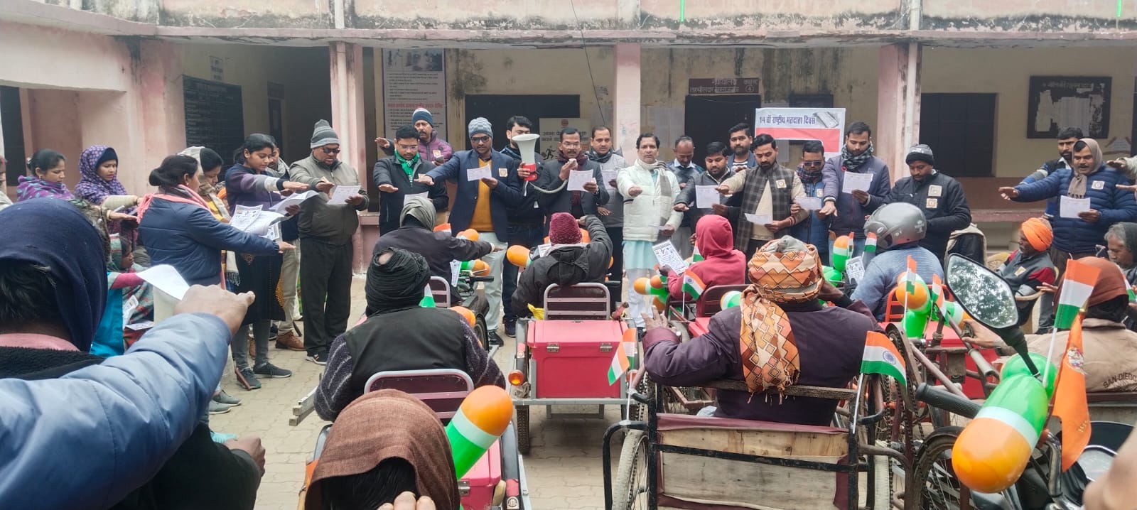आपको बता दें कि, सर्वप्रथम एसडीएम रजितराम गुप्ता द्वारा तहसील परिसर में लोगों को शत् प्रतिशत मतदान करने की शपथ दिलाई गई। जिसके बाद एसडीम के नेतृत्व में सीओ यादवेंद्र बहादुर पाल व भाजपा नेता प्रभात साहू सहित क्षेत्र के रहने वाले दर्जनों दिव्यांगों, आम जनमानस व छात्र छात्राओं के साथ जागरूकता रैली निकाली गई, और लोगों को शत् प्रतिशत मतदान करने के लिए प्रेरित किया गया।