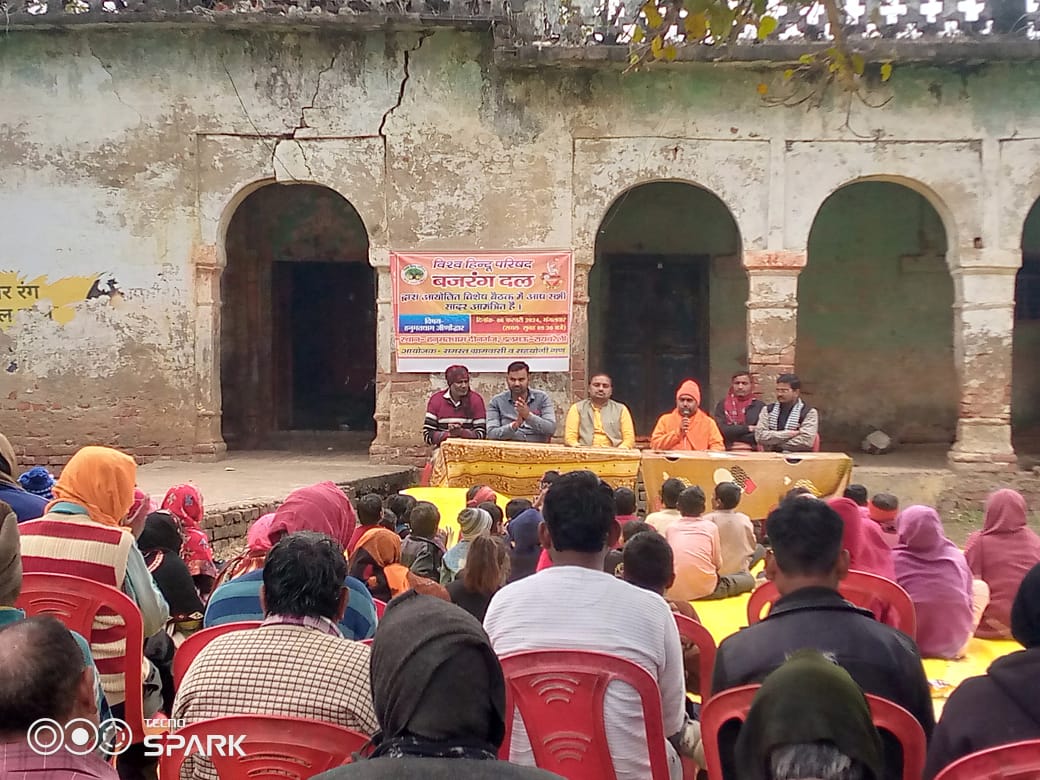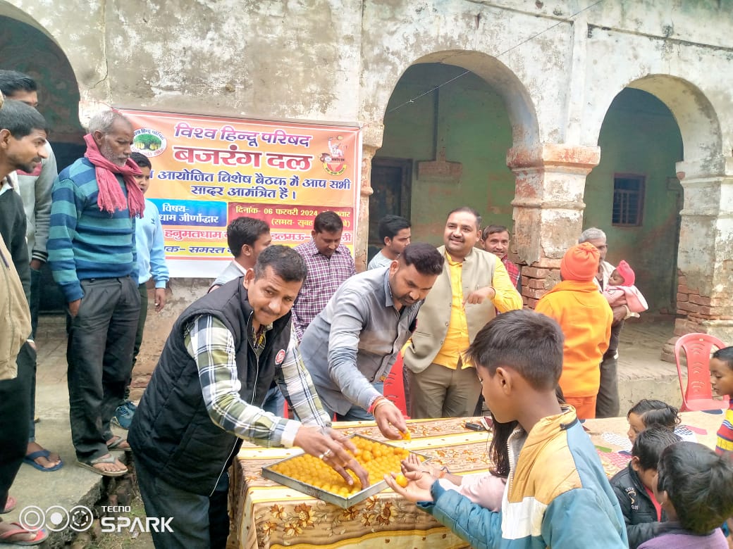 रायबरेली डलमऊ हनुमत धाम जो कभी 1969 में संत कामतानाथ जी द्वारा निर्मित कराया गया था आज वह देख रेख एवं पूजा पाठ के अभाव में वीरान खंडहर के रूप में प्रदर्शित होने लगा है जिसके निमित्त बजरंग दल विहिप द्वारा जिला संयोजक योगेंद्र शुक्ला के नेतृत्व में एक बैठक का आयोजन किया गया उक्त बैठक में स्वामी श्री दिव्यानंद जी के द्वारा श्री हनुमान जी के अतुलित बल एवं कलयुग में उनके प्रभाव का वर्णन किया गया उनके चरित्र का वर्णन सुनकर सभी लोगों ने सामूहिक हनुमान चालीसा पाठ एवं पूजन करने का तथा आराध्य हनुमान जी के लिए पुनः हनुमत धाम को नवीनीकरण करने का संकल्प लिया इस अवसर पर प्रसाद वितरण रावेंद्र जायसवाल द्वारा किया गया तथा दीनगंज गांव के सामूहिक निर्णय में राजेंद्र जी संघप्रचारक, राधाचरण, शिवम गुप्ता,देवनारायण, मिंटू ,पिंटू, शीतला कोटेदार, शिवाकांत, मेवालाल, गुड्डू अग्रहरि, राजेंद्र, राम लखन गौड़, राजेश, रमाकांत, वीरेंद्र जायसवाल, मोहनलाल समेत सैकड़ो की संख्या में लोग उपस्थित रहे।