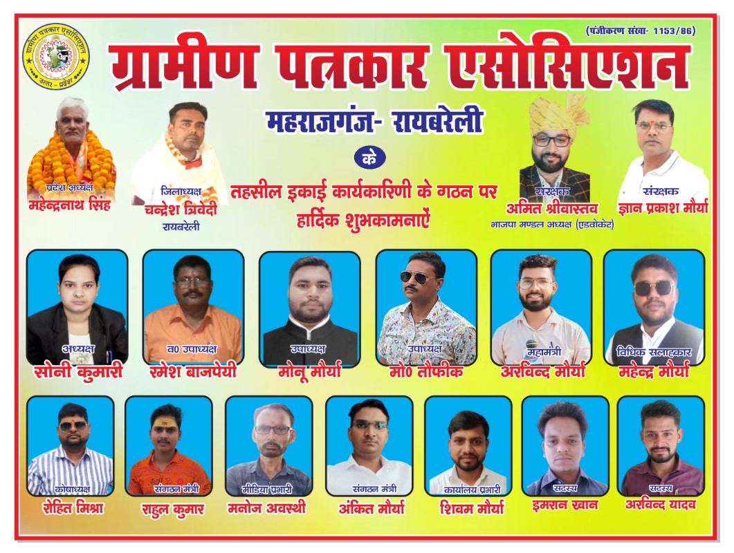 रायबरेली /महराजगंज: ग्रामीण पत्रकार एसोसिएशन प्रेस क्लब का दूसरा वार्षिकोत्सव महराजगंज इकाई में बने कार्यालय में मनाया गया। इस दौरान कार्यक्रम में पत्रकारों के अधिकारों के लिए कई बिंदुओं पर भी चर्चा की गई। वहीं प्रेस क्लब के संरक्षक अमित श्रीवास्तव व ज्ञान प्रकाश मौर्य ने प्रेस क्लब द्वारा साल भर में किए गए कार्यों की विस्तृत जानकारी दी। कार्यक्रम में मुख्य अतिथि के तौर पर ,भाजपा नेत्री अंजली मौर्य ,महिला मोर्चा जिलाध्यक्ष सुधा अवस्थी, प्रभात साहू, डॉ राकेश यादव, भाजपा पूर्व पमहामंत्री सरोज गौतम, एडवोकेट विद्यासागर अवस्थी शामिल हुए। इस दौरान भाजपा नेत्री अंजली मौर्य ने प्रेस क्लब द्वारा किए गए कार्यों की सराहना करते हुए कहा कि ग्रामीण पत्रकार एसोसिएशन प्रेस क्लब एक ऐसा मंच है, जो शहर के चौमुखी विकास के लिए कार्यरत है। वहीं ग्रामीण पत्रकार एसोसिएशन की नई कार्यकारिणी के गठन पर अध्यक्ष पद हेतु कुंवारी सोनी वह महामंत्री अरविंद मौर्य को बनाया गया। वहीं वरिष्ठ उपाध्यक्ष रमेश बाजपेई, उपाध्यक्ष मोनू मौर्य,उपाध्यक्ष मोहम्मद तौफीक, विधिक सलाहकार महेंद्र मौर्य, कोषाध्यक्ष रोहित मिश्रा, राहुल कुमार संगठन मंत्री, मीडिया प्रभारी मनोज अवस्थी,संगठन मंत्री अंकित मौर्य, कार्यालय प्रभारी शिवम मौर्य, सदस्य इमरान खान, सदस्य अरविंद यादव को नियुक्ति किया गया और आए हुए अतिथियों ने फूल माला पहनकर सभी को बधाई दी।वहीं सम्मानित अतिथि के तौर पर पहरेमऊ के मंडल महामंत्री नवनीत मौर्य, ग्राम प्रधान हरिश्चंद्र मौर्य, बालकृष्ण मौर्य, एडवोकेट कुमार मौर्य शामिल हुए।