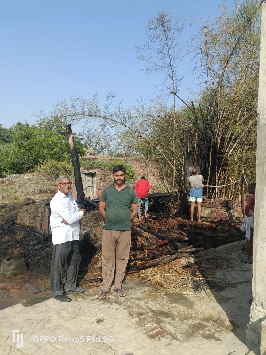 अज्ञात कारणों से लगी आग से गरीब का आशियाना जलकर राख बाल बाल बची फसल