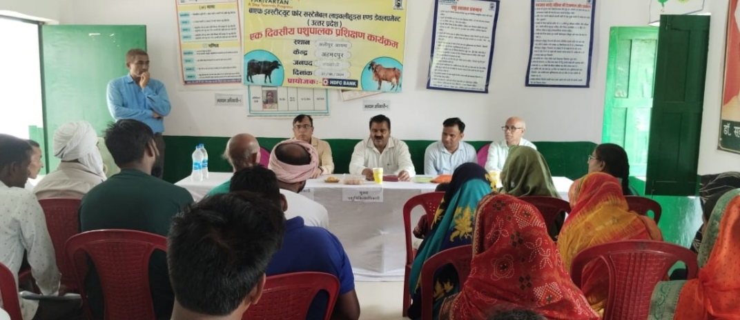 महराजगंज रायबरेली।बीआईएसएलडी (बायफ) संस्था द्वारा एचडीएफसी बैंक के वित्तीय सहयोग से जनपद रायबरेली के बायफ़ पशु विकास केंद्र अहमदपुर के अंतर्गत ग्राम अलीपुर में एक दिवसीय पशुपालक प्रशिक्षण कार्यक्रम दिनांक 27.06.2024 को आयोजित किया गया।