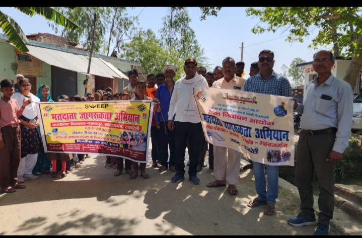 पखनपुर ग्राम सभा में मतदाता जागरूकता अभियान के तहत निकाली गई रैली
