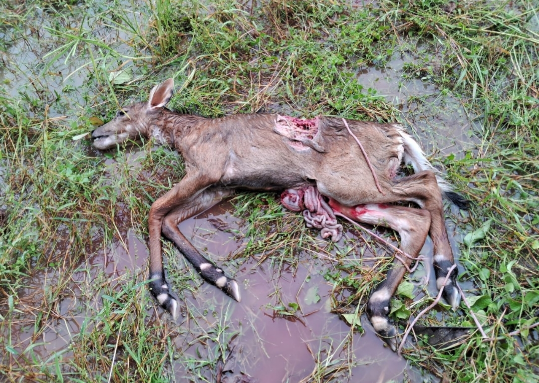जंगली जानवर ने नीलगाय के बच्चे को बनाया अपना शिकार